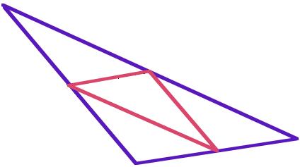 IntroducciónAl enseñar a los niños fracciones comunes, con frecuencia se les pide que dividan una figura en partes congruentes (partes que tienen el mismo tamaño y la misma forma). Las figuras más comúnmente elegidas son círculos y rectángulos, ya que éstas se pueden dividir en cualquier número de partes congruentes, sin ningún desafío intelectual. Ejemplos de mayores desafíos son los rompecabezas. Uno de los más conocidos es el siguiente: Lleve a cabo este ejercicio con sus estudiantes; para ello, imprima esta figura. Un buén tópico de estudio es el observar cómo un triángulo puede dividirse en un número k de triángulos congruentes. Algunas construcciones son fáciles y otras más complejas, dando la impresión de estar más allá de lo que se puede resolver en el aula. Actividad Aquí se enumeran los detalles más importantes que pueden ser investigados. 1. Cada triángulo puede dividirse en cuatro triángulos congruentes, a través de conectar los puntos medios de sus tres lados.