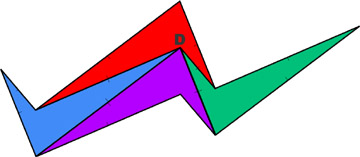 Note que cuatro de los vértices de la cometa siempre se encuentran en un mismo punto. Aquí se muestran cuatro vértices diferentes que se encuentran en el punto D.