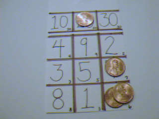 Cada estudiante necesita una tabla de cuadrado mágico, cinco monedas
