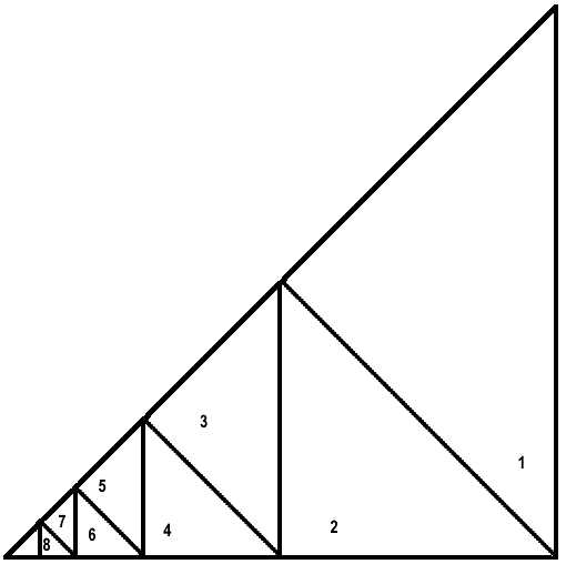Parte I. Procedimiento búsico [volver arriba] 2. El lado mayor de cualquiera de estos triúngulos es igual a la hipotenusa del siguiente y, por tanto, si los unimos de tal manera que los úngulos menores de ambos triúngulos sean adyacentes, dicha configuración comenzarú a formar una "espiral."
