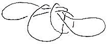 Un caso distinto es cuando los bordes de una cuerda se hallan unidos. La cuerda, en tal caso, forma un lazo. No se puede atar un nudo en tal lazo sin cortar la cuerda. En el dibujo a la izquierda se muestra el nudo más simple en un lazo, que no puede desatarse sin cortar la cuerda. |