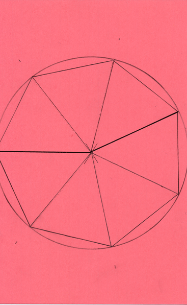 Ahora lo dividirán en dos partes; una contiene 3 secciones del heptágono,