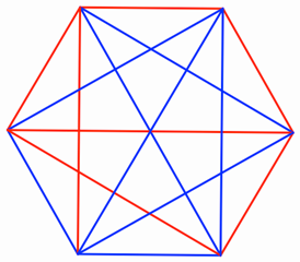 short diagonals, and three long diagonals. Draw these segments with two colors,