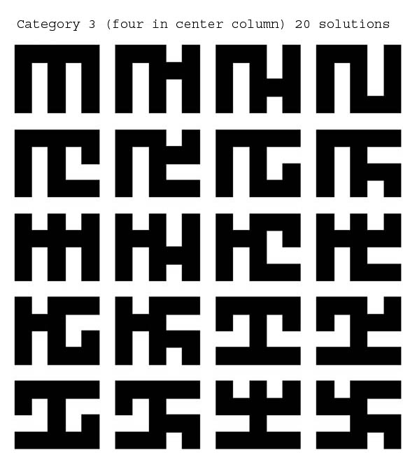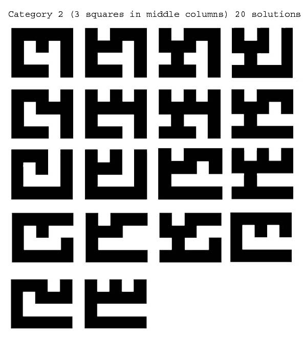 Category 3 solutions ( 4 squares in center column) 20 solutions