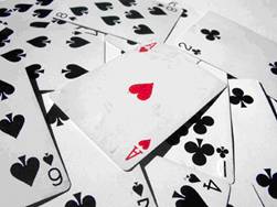 The game is played with one or more decks of cards from which all face cards and tens have been removed, leaving only A, 2, 3, ..., 9 in each suit (36 cards). Each player is dealt the same number of cards (three to seven). The game with three cards is the easiest, slowest, and least interesting. In the examples we'll use a five-card game.