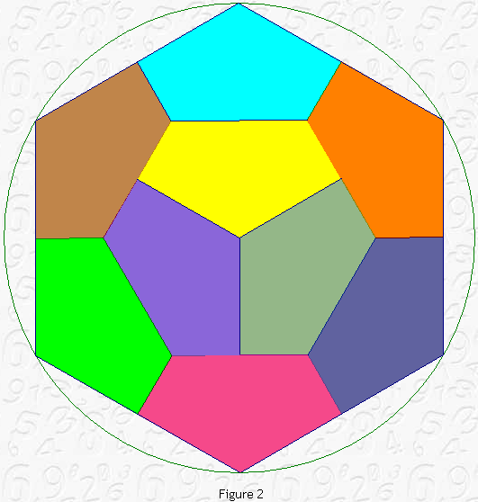 Notice that three central pentagons also form a smaller regular hexagon.