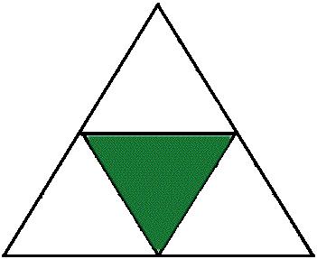 - Connect the middle points of these edges to form a smaller central triangle with ¼ of the area. Color it green.