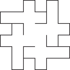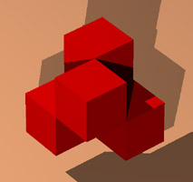 The purpose of this unit is to learn to make from cardstock or poster board the four-cube “sculpture” shown above on the right. [Note: Children in elementary grades can build the four cubes from a one-piece pattern. (Six one-piece patterns are given at the end of the unit.) The cubes are a challenge to put together when they are made from two pieces, and this task is better suited for middle school students.]