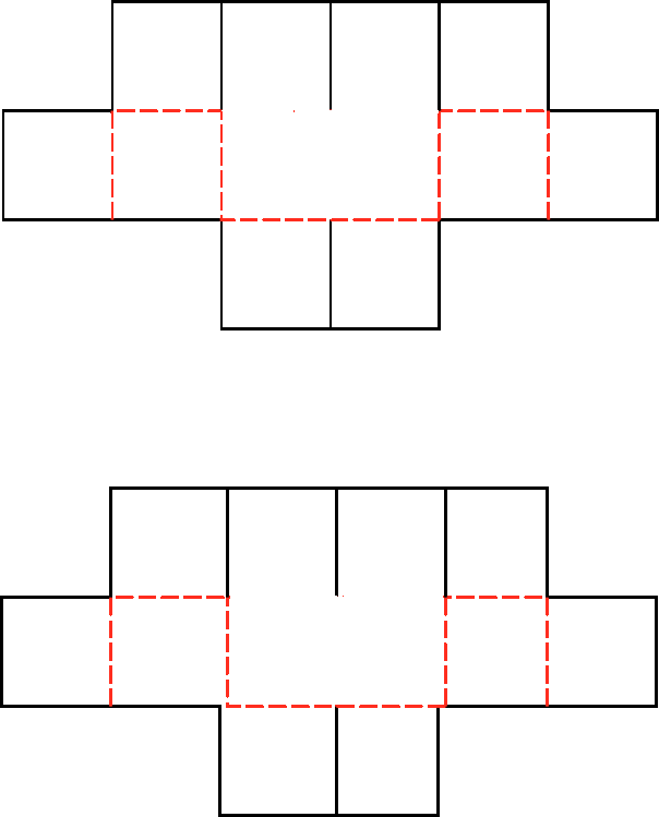 Now fold each piece along the red dotted lines indicated below. (You may score along the lines with the point of a compass before folding. This will help make your creases sharp.) Click on the pattern below to see it full-sized.