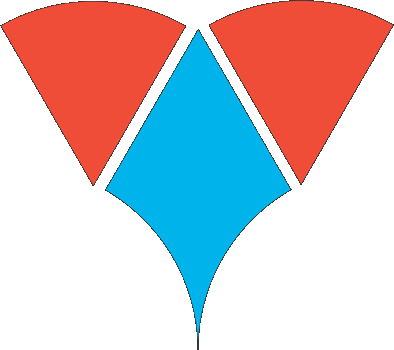 Carefully cut out the triangle, and cut along the arcs to make three pieces. Reverse the two part circles, and you have a stylized fox