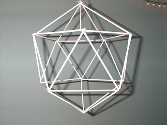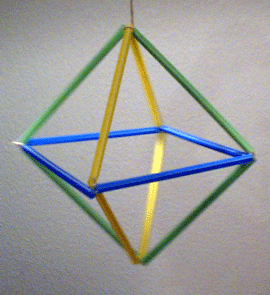 Straw polyhedra are skeletal polyhedra whose edges are non-bendable (8 inches long or less) colored straws, held together by thin cotton twine threaded through the straws. Straw polyhedra are very light and attractive looking, and they are a very valuable teaching help in the early and middle grades.