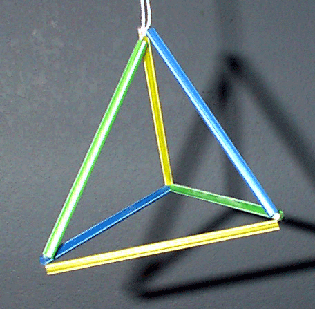 Make a straw triangle with edges of three colors, A, B, C, which will hang with edge C at the top, and vith a vertex pointing down.
