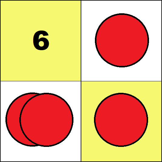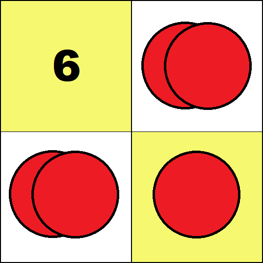 Students use both red and white counters. But they should put them on the same board until they start learning about negative numbers. Preferably, students work in pairs. Each student has one board and 6 counters, and each student is told which color to use. There is no limit for stacking counters on one square, so six tokens on the square 6 represents the number 36. The teacher should decide the range of numbers that are being studied, but it should be at least one through 20. 1. Names of Numbers Students need to learn to use correct names for the numbers they represent on the board. ![]() Seven ![]() Thirteen 2. First Arithmetic Activity Students are asked to add several small numbers, each number represented by just one counter, in the order in which they are given. All students using white counters are adding 2 + 3 + 1 + 1 + 2. And students using red counters add 1 + 2 + 3 + 3 + 2. After they finish, they compare the red and white numbers to answer two questions: Are the numbers equal? And if not, which number is bigger? and: What is their difference?