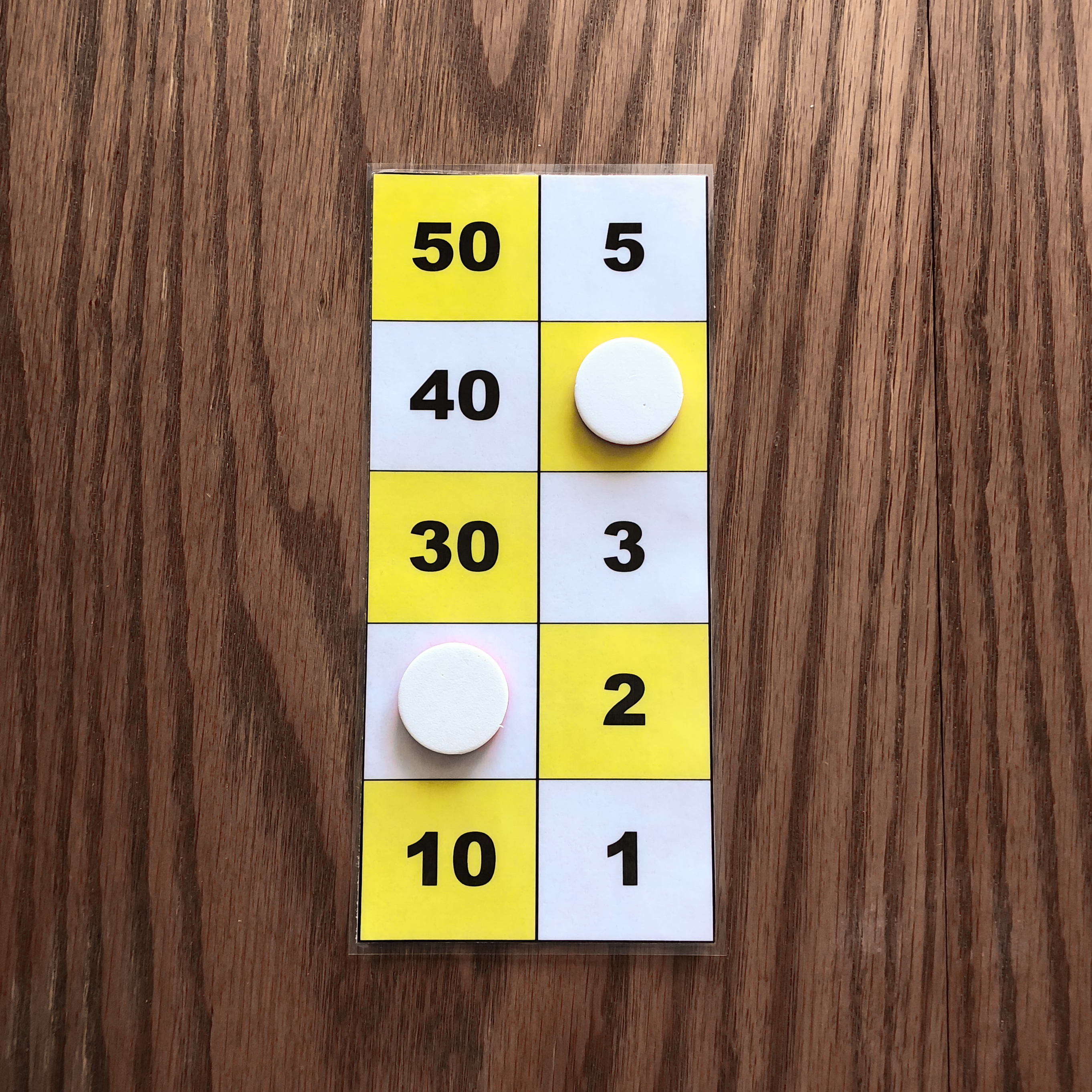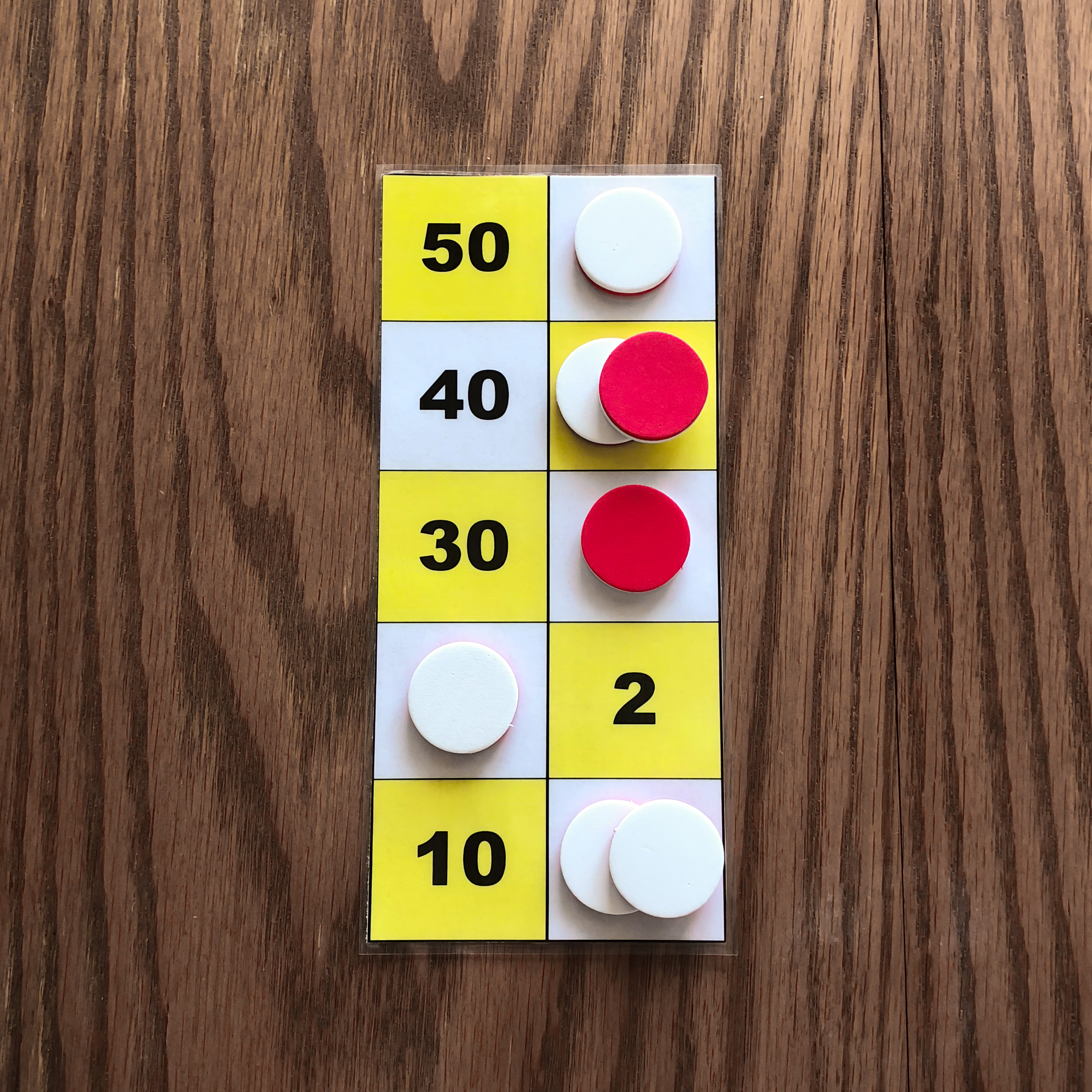The pictures above show the children's boards after copying the counters. After this step, both children's boards should show the same configuration.
