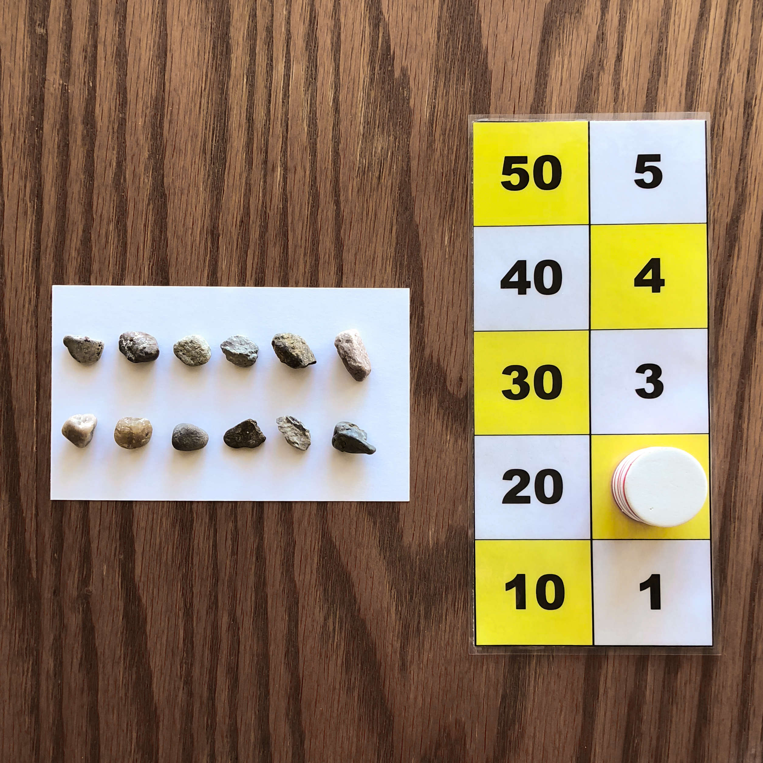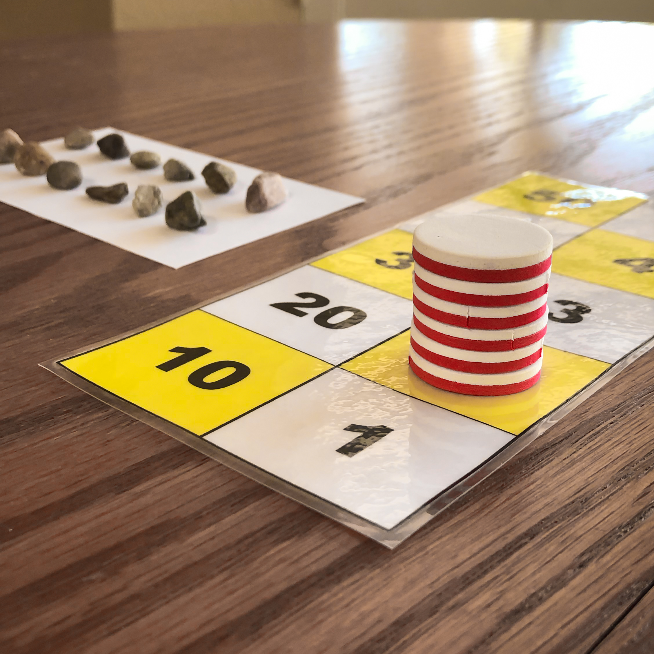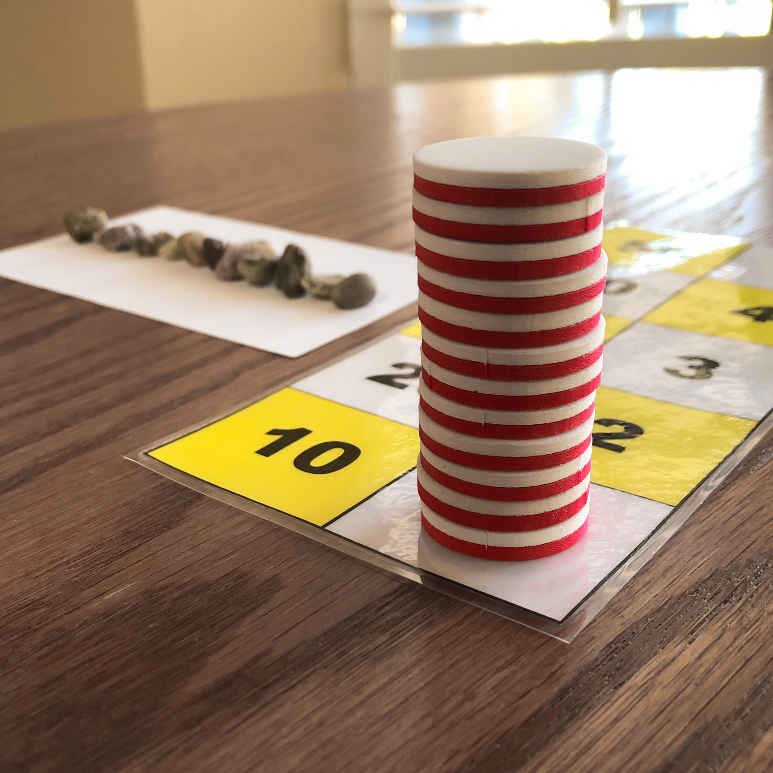 This image shows one to twelve rocks counted on the paper. This is represented on the number board by