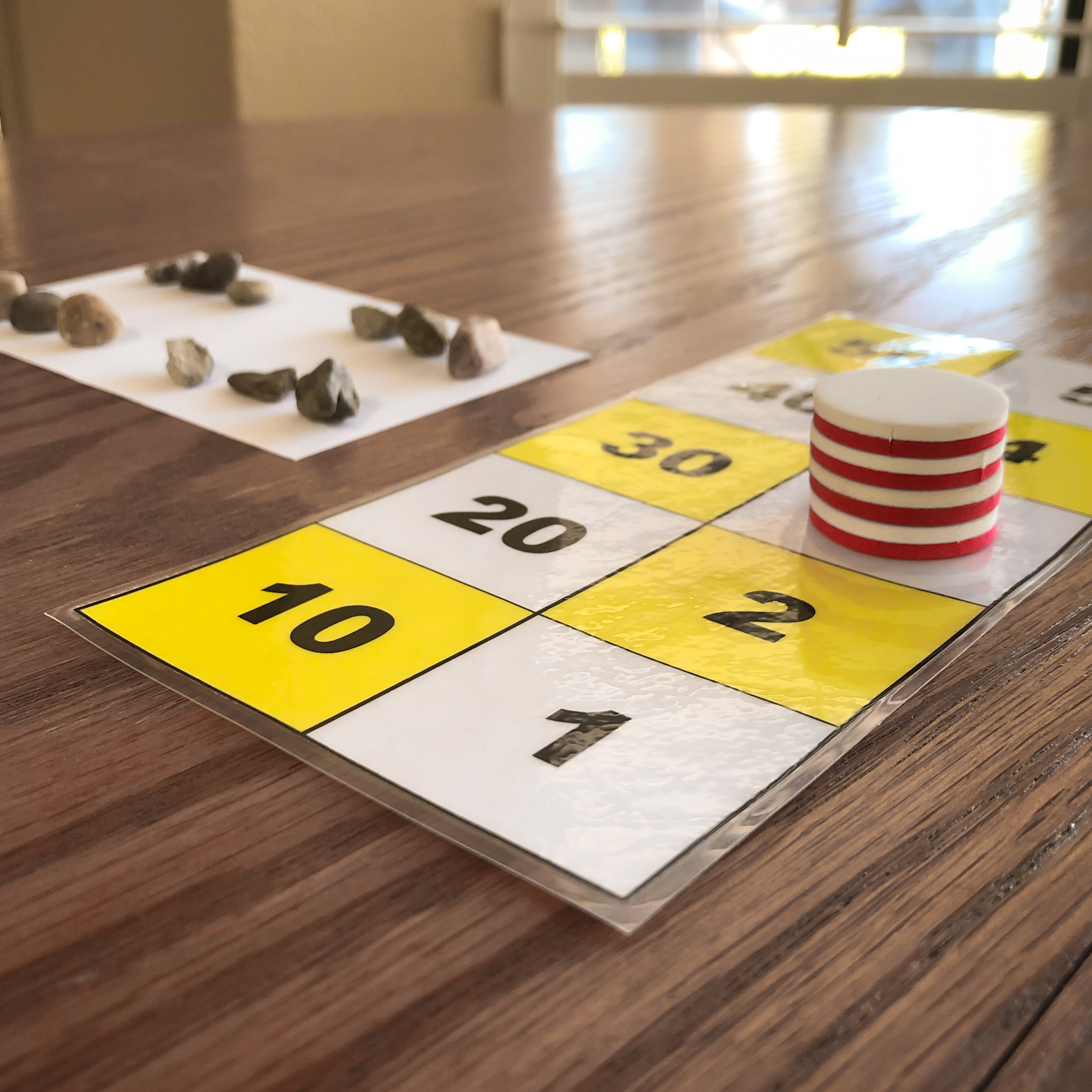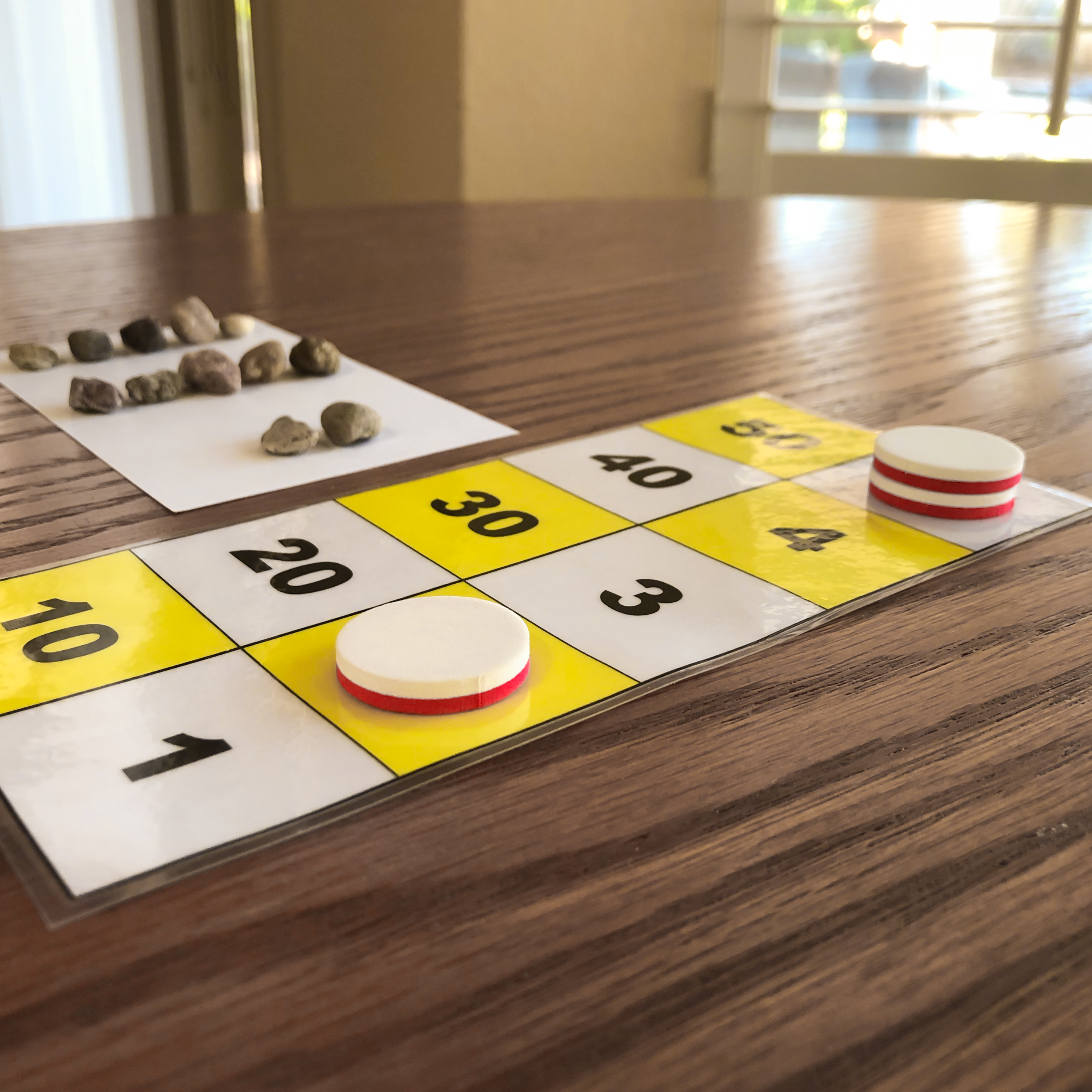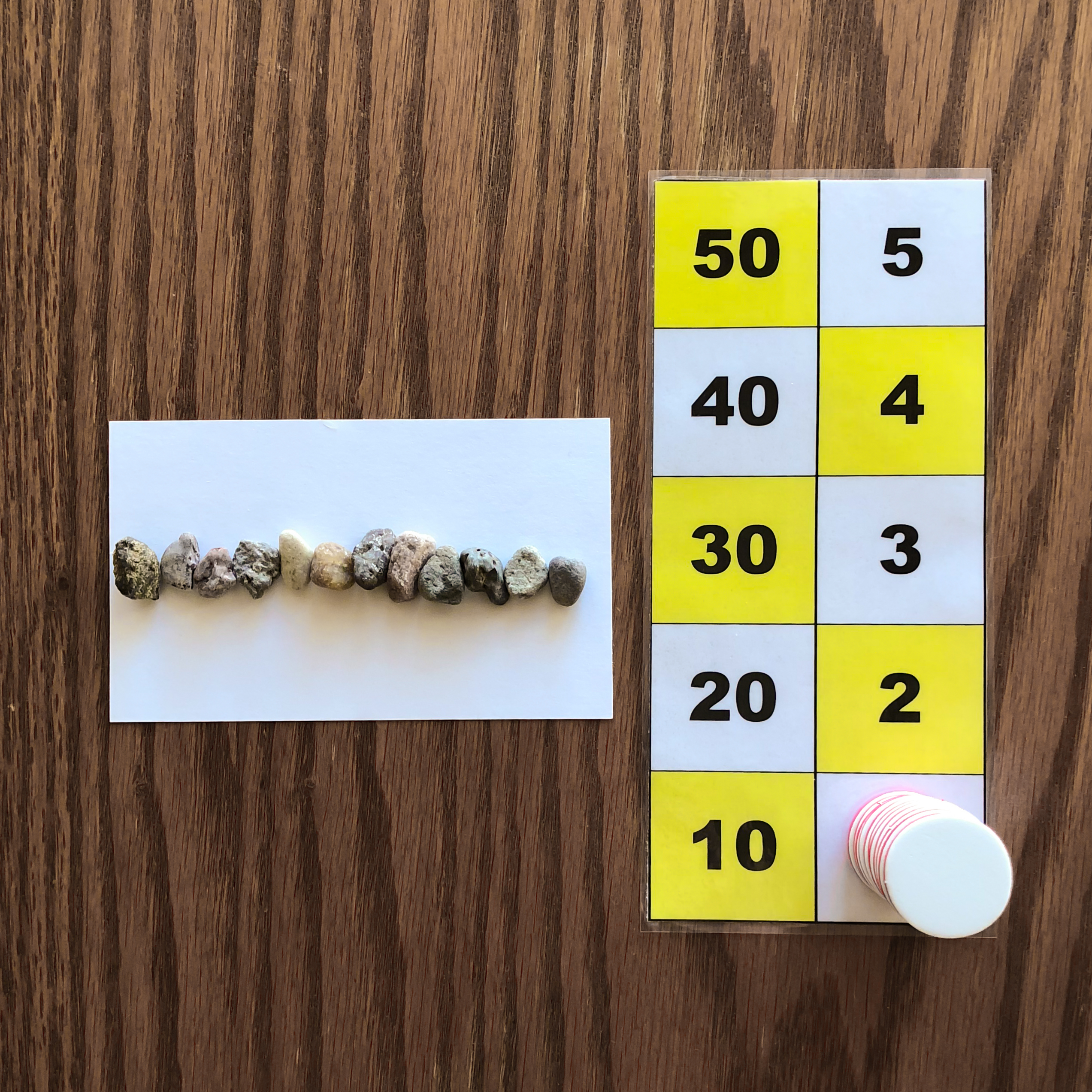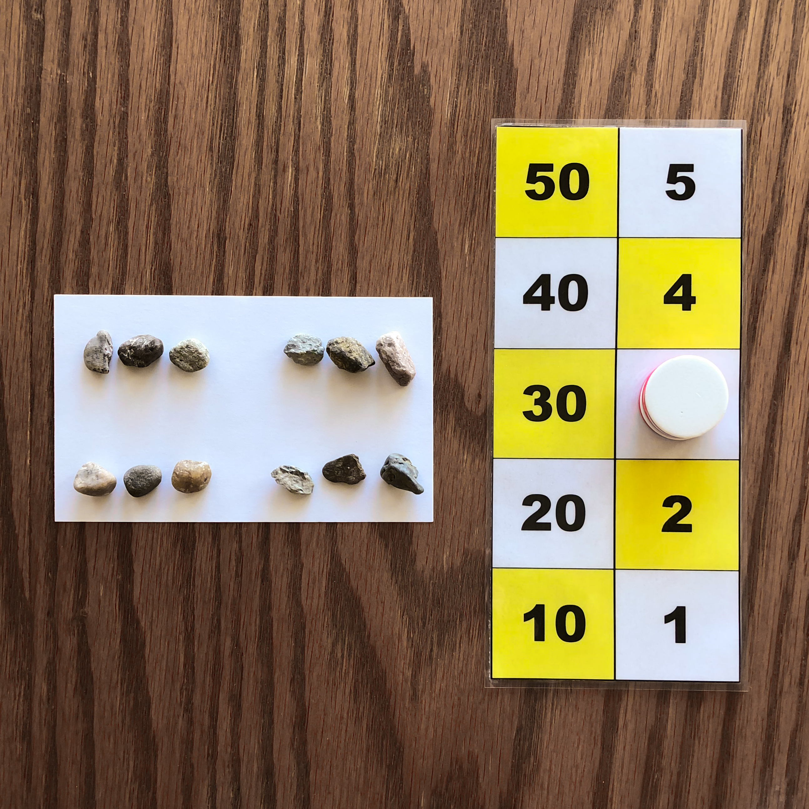 This image shows one to twelve rocks counted on the paper. This is represented on the number board by