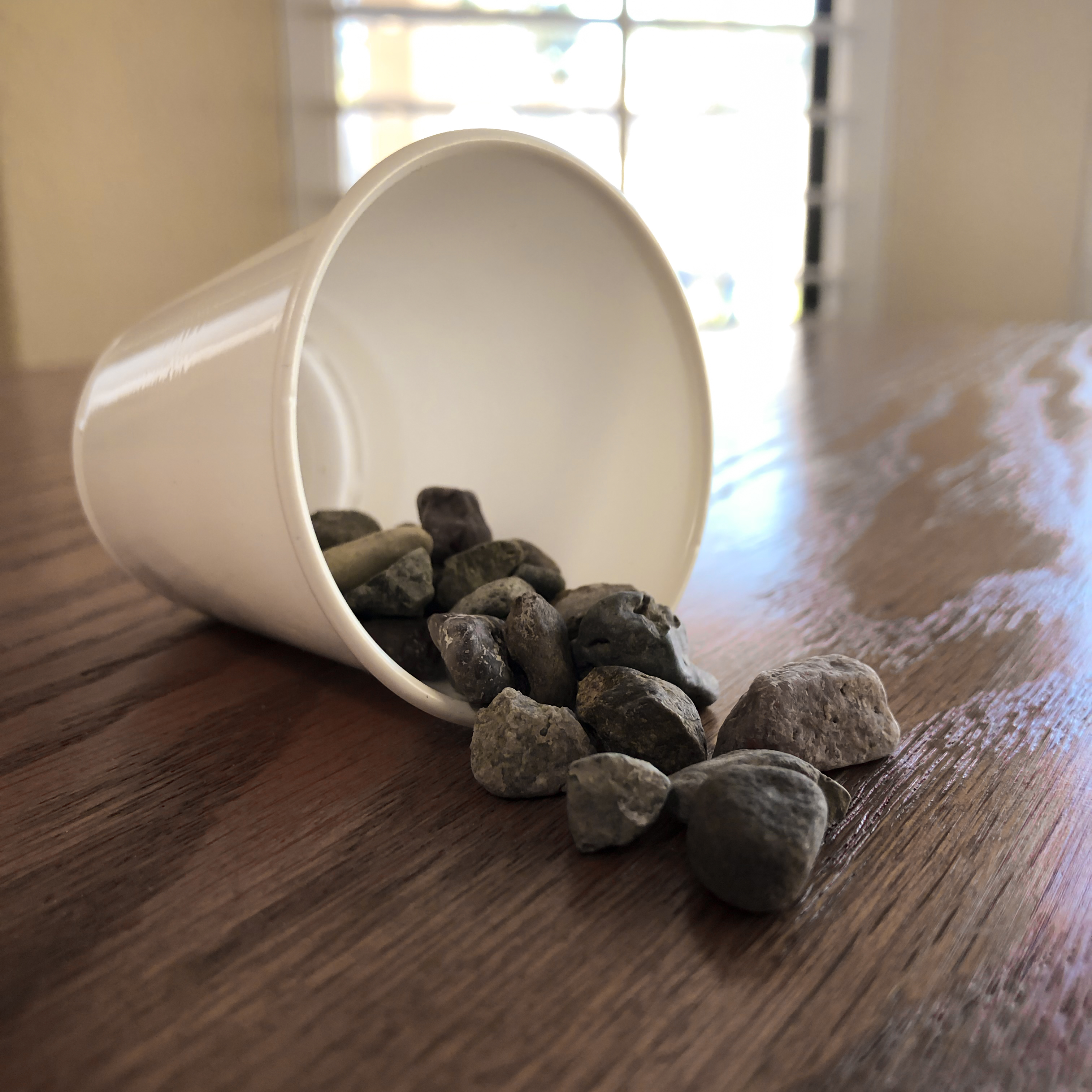 This image shows six groups of two rocks on the paper. This is represented on the number board by