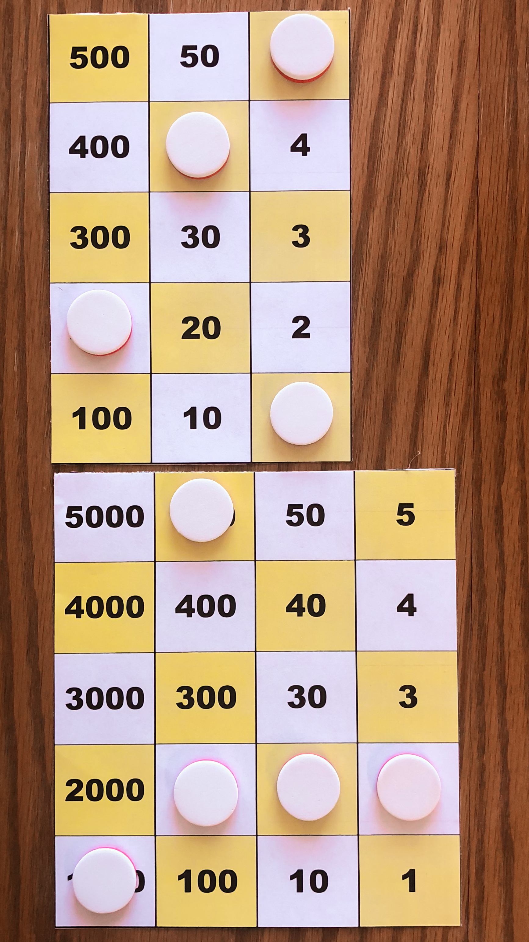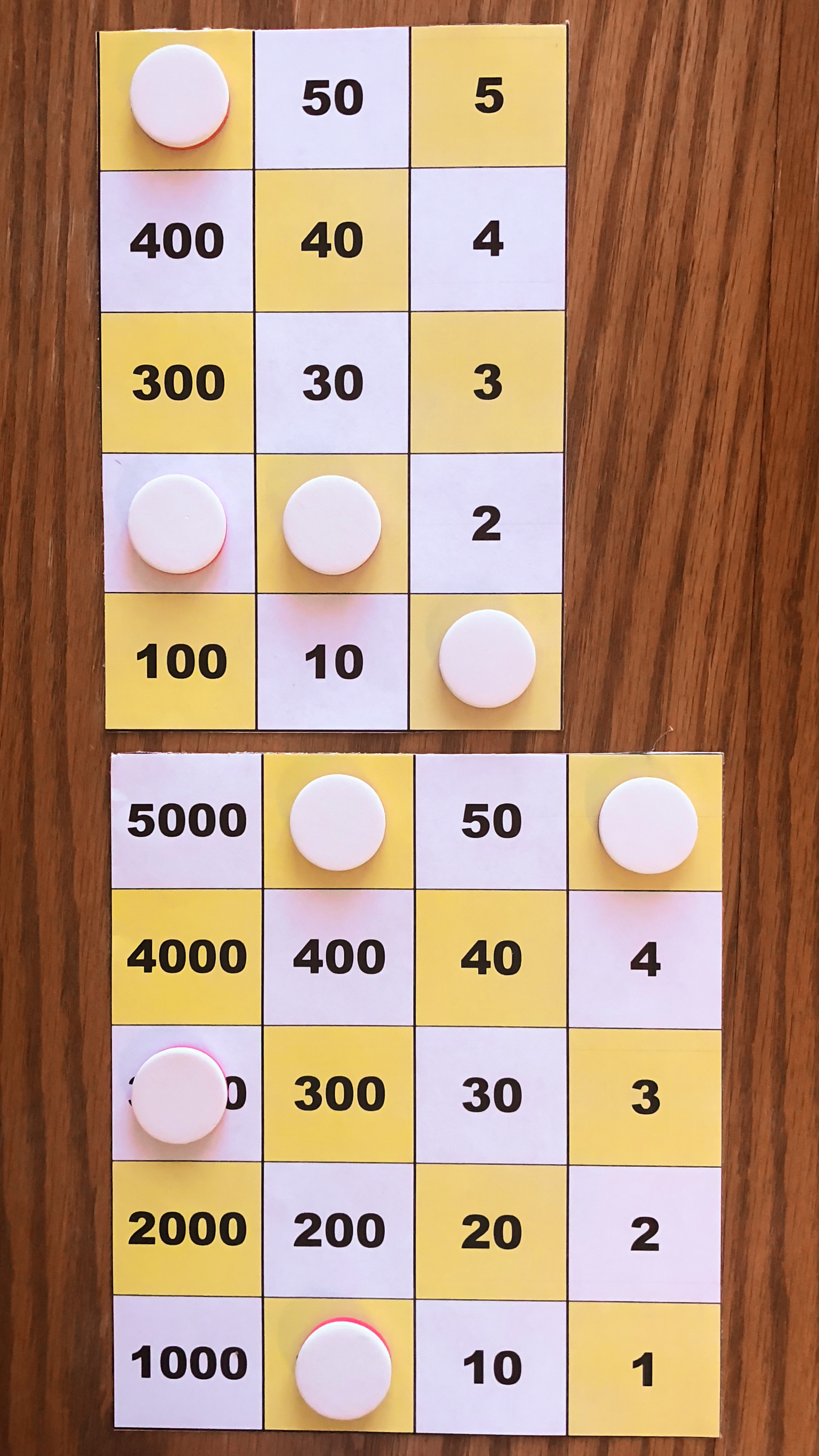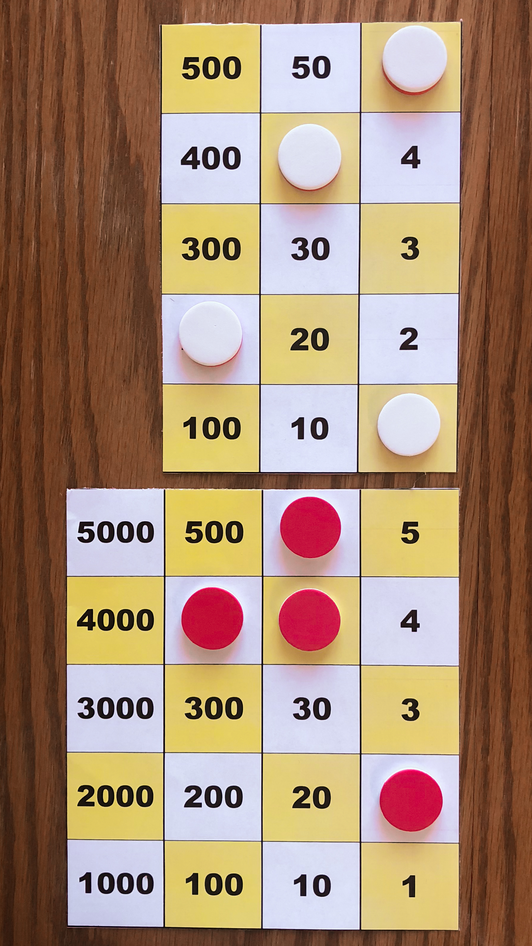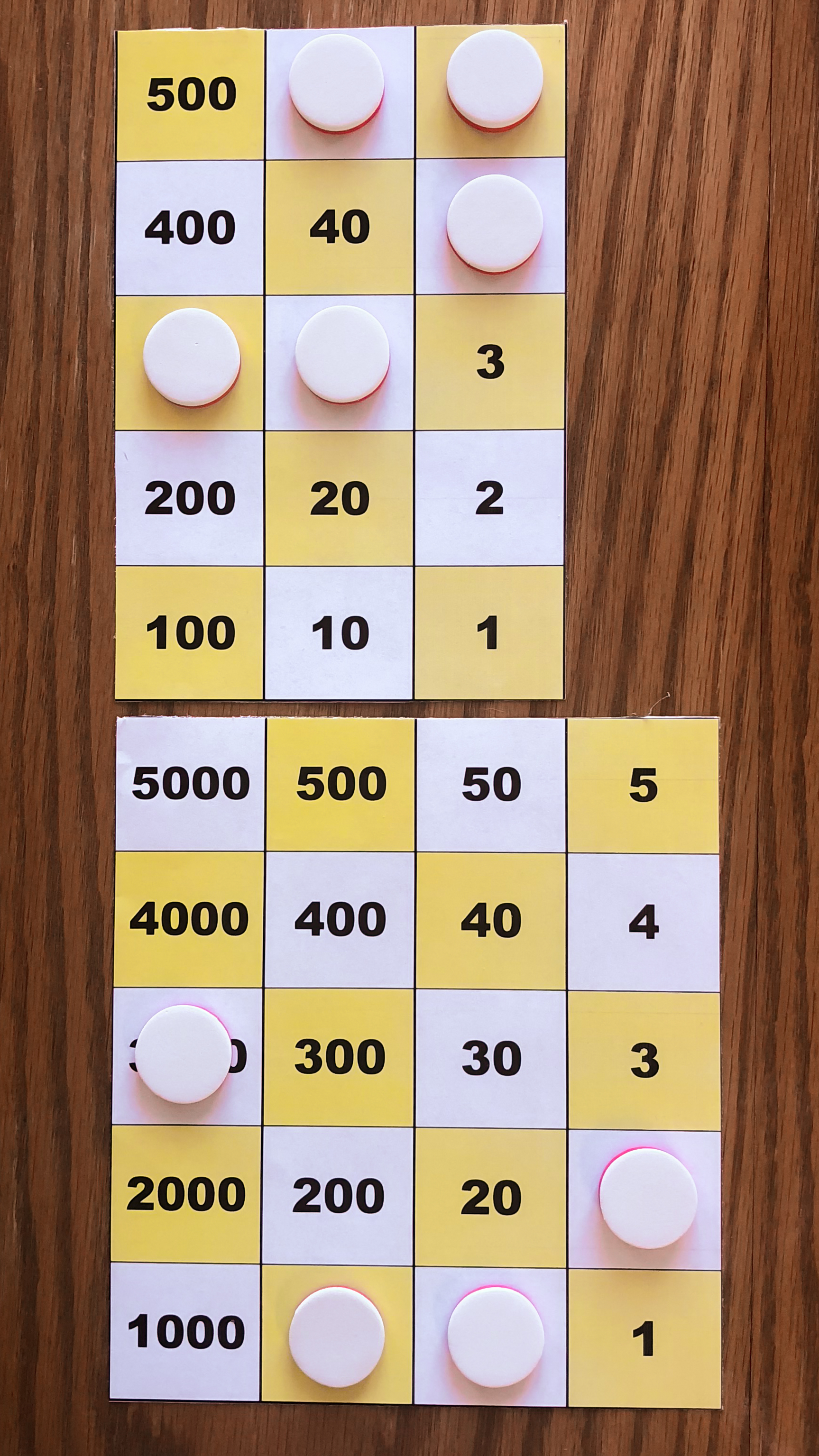 Board M holds 357. In the left image, Board P holds 10*357 using white tokens