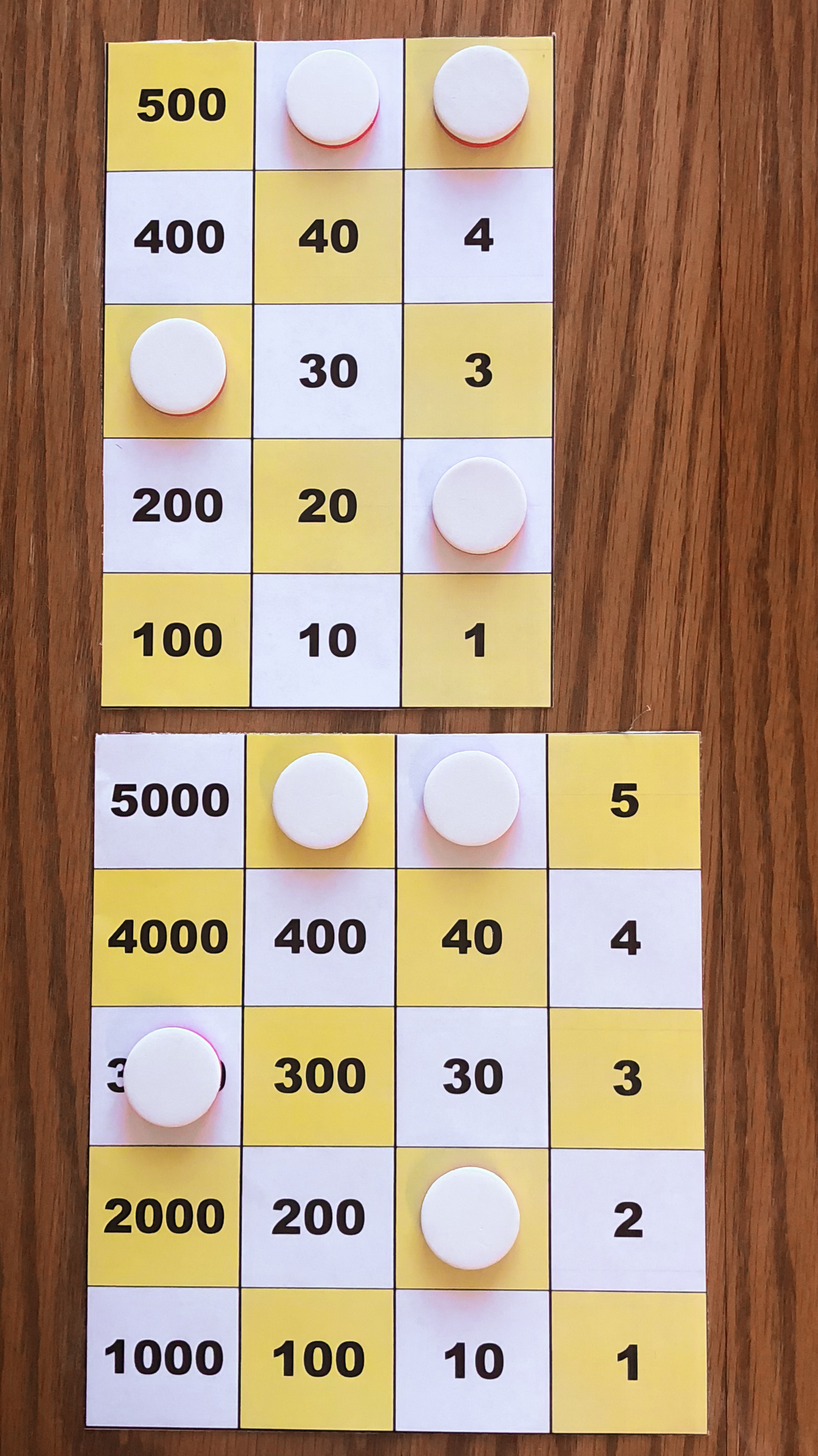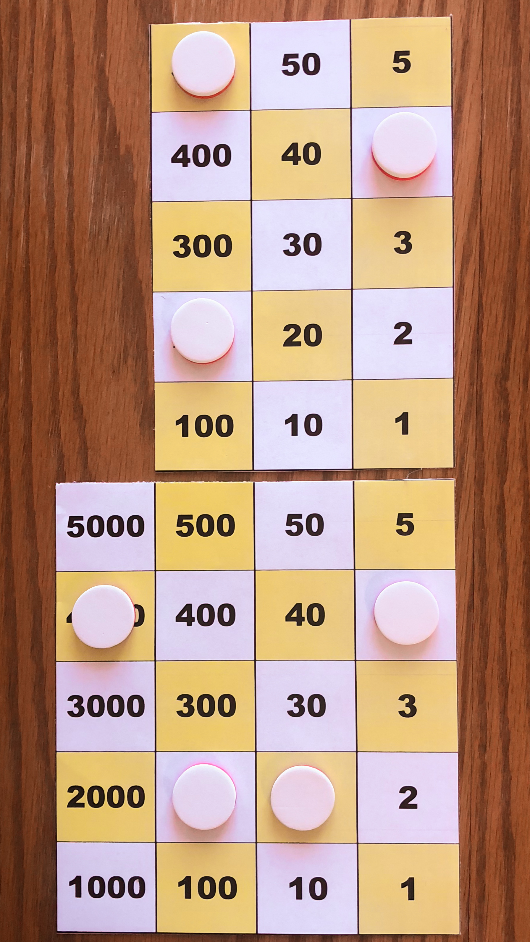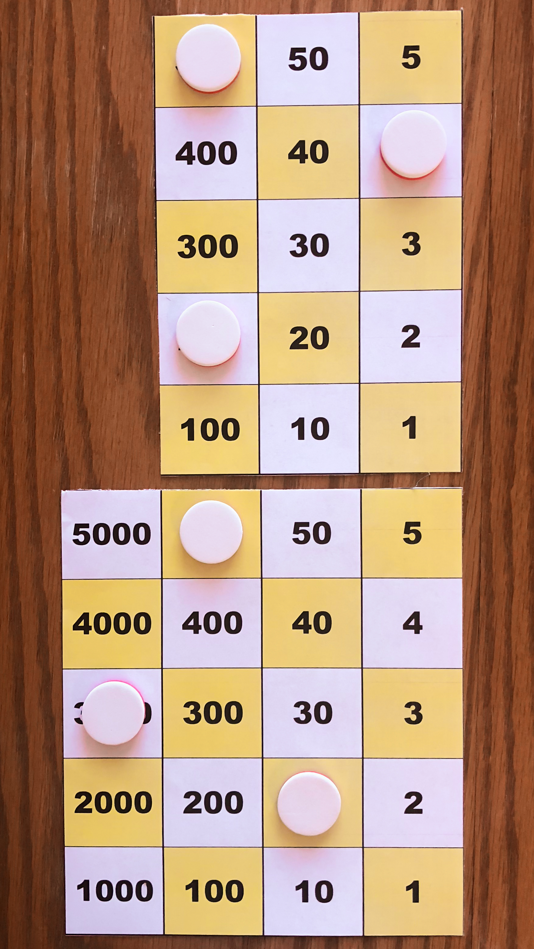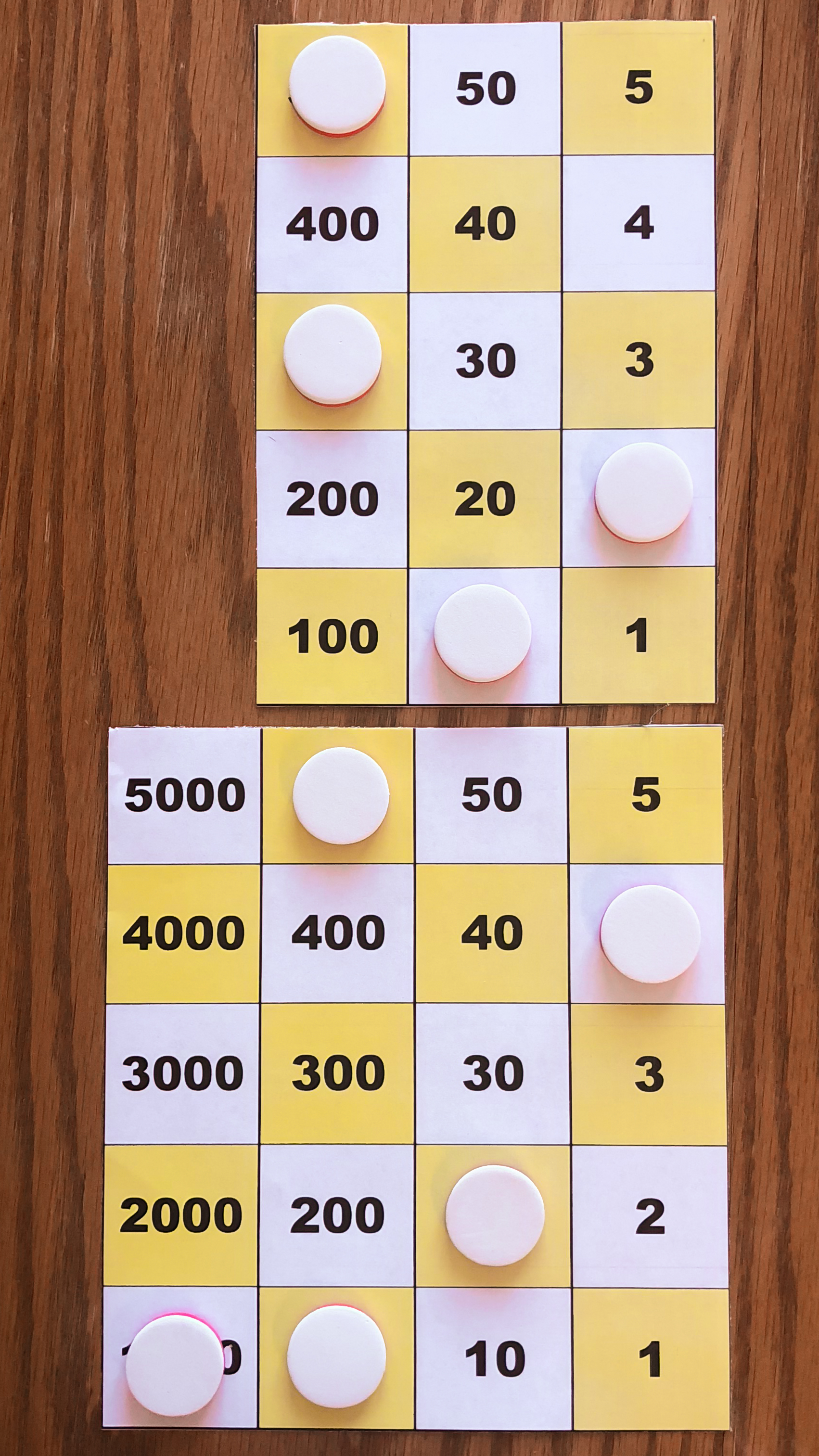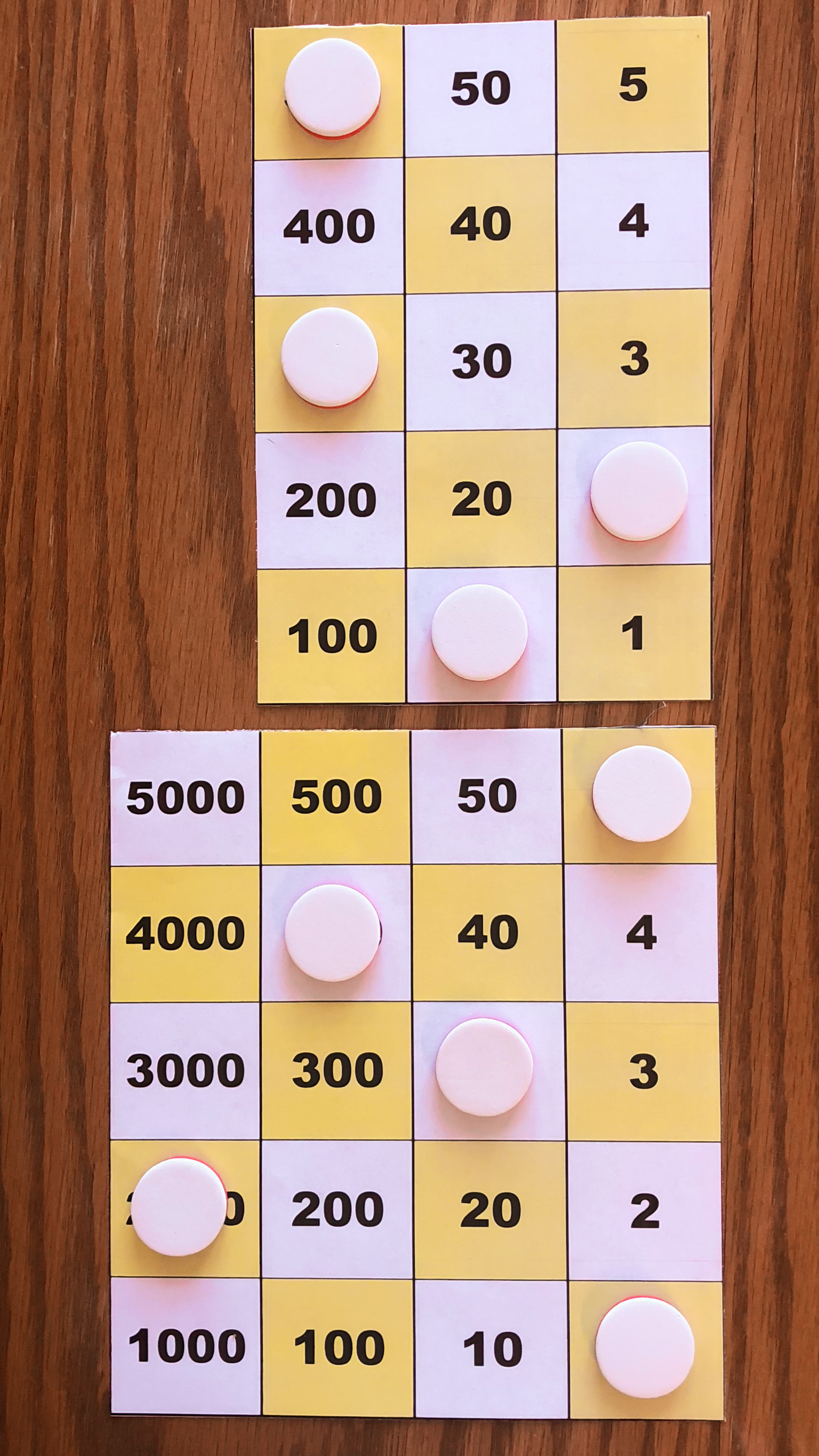 Board M holds 357. In the left image, Board P holds 10*357 using white tokens