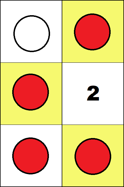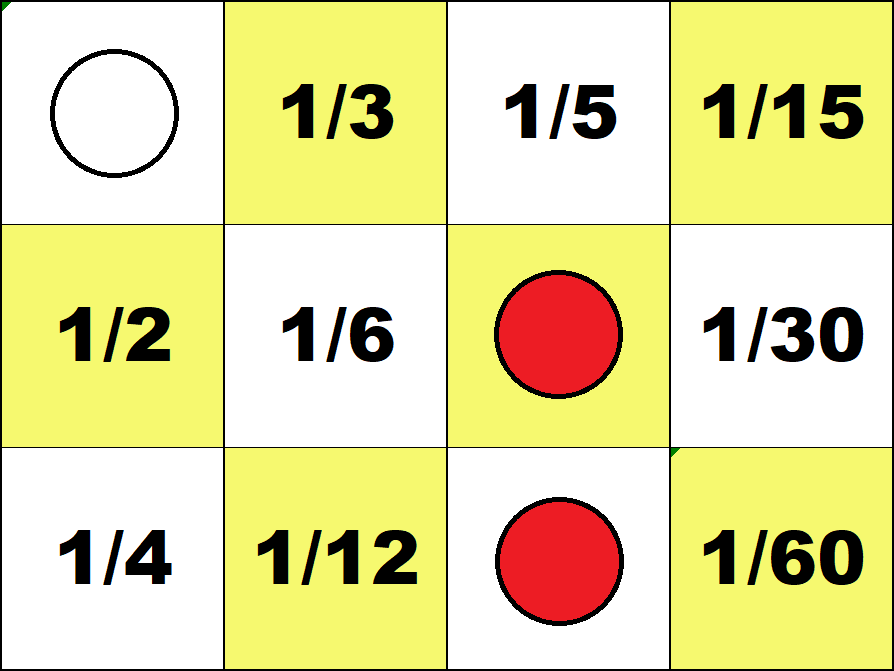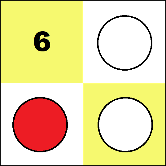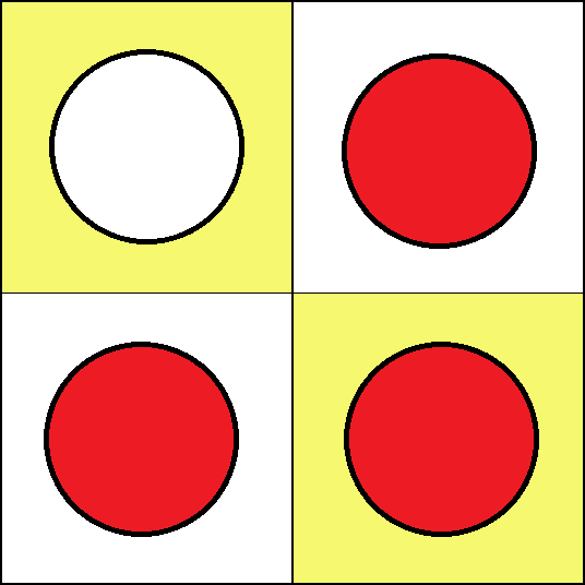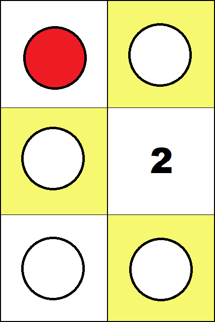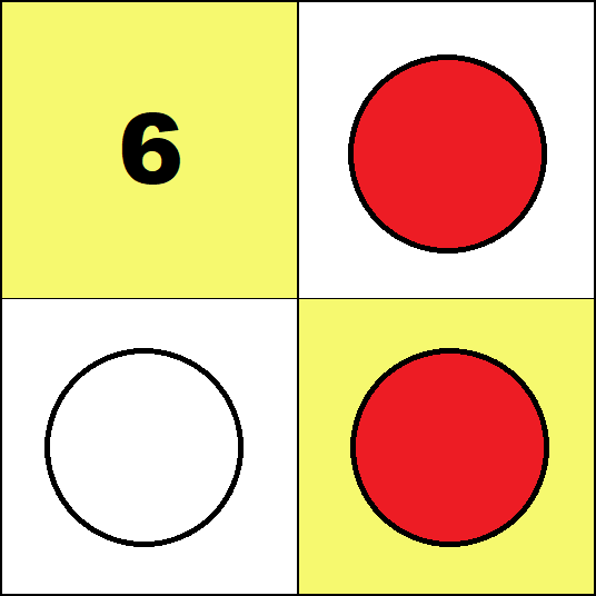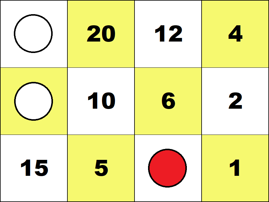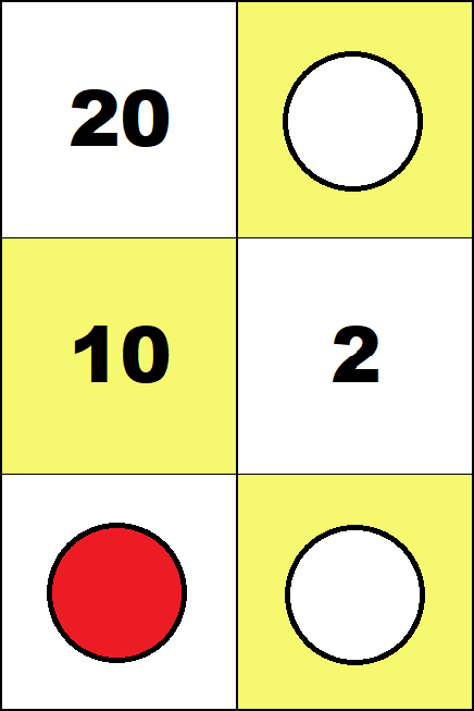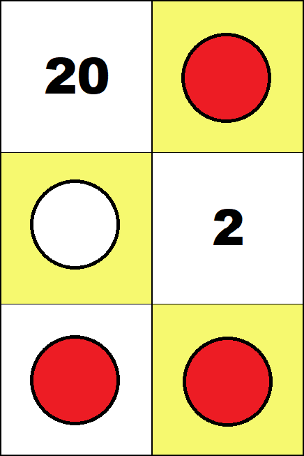 Working with these boards is not essential for learning any specific arithmetic algorithm. But it provides the opportunity to get familiar with individual whole numbers up to one hundred and some small fractions. (Such knowledge is commonly called "number sense".) The logical structure of arithmetic requires that such activities include using negative numbers. So in all activities, red counters must be used only for negative numbers, and white counters only for positive numbers. Activities For the Four Small Boards In all activities below students may put only one counter on each square. Task 1 Find all configurations representing zero on the 2 by 2 and 3 by 2 boards.