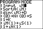 The program MODE accepts a list of numbers and returns the number that is the mode of the list, when there is just one number that occurs more times than any other. Otherwise it gives the message "NO MODE".