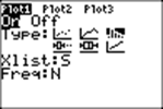 Now we can plot the number of occurrences of each element of the list by using STAT PLOT. We set Xlist to S, and Freq to N: