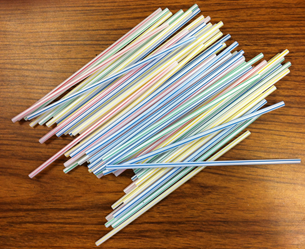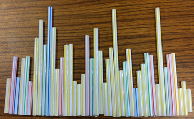 Your task is to cut each of your straws into three pieces (with two cuts!). The shortest piece should be at least one inch long. Try to make the cuts straight across, and try to make the pieces be of different lengths. Then on your data sheet, record the length of each piece to the nearest millimeter. Give the list to the instructor, who will enter lengths from the whole class into a list on his/her calculator.