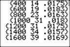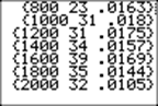 After seeing 10 graphs, {200 10 .025} was displayed on the homescreen.