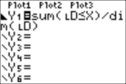 returns the value one for any element of the list LD which is less than or equal to X. Y1 computes the frequency, a number between 0 and