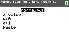 (1) When you choose 2nd, DISTR, 1:normalpdf(, you see: