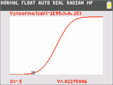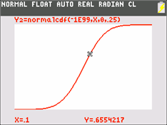 \Y2=normalcdf(-1E99,X,0,.25)