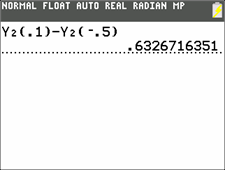 The computed formula can be read "The integral of Y1, computed for X changing from -.5 to ,1." Its value is the average value of function Y1(X), where X is changing from -.5 to .1, multiplied by the difference, .1 - -.5.