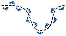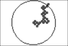 In the program WALK, you start at the center of a “fenced” circle that has a radius of ten units. At each move, you take a step in one of four directions, NE, NW, SW, SE. You leave a “footprint” at each step. You may choose the way your footprint looks: a dot, a little open square, □, or a little plus sign (see below). You may choose your step size; one or two is probably best. Your goal is to stay inside the circle for as many steps as you can. When you hit the border of the circle, your journey stops, and the program tells how many steps you took.