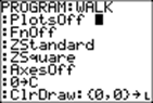 Let’s first put WALK into our calculators. Here is the code for WALK: