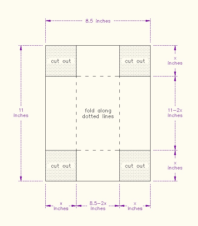 Make a box with maximal volume that will close from an 8 1/2 inch by 11 inch piece of paper.