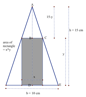 Using paper of a different color, design a rectangle that will fit in the triangle. A base of the rectangle should sit on the base of the triangle. Cut out the rectangle, and check that it fits in the triangle.