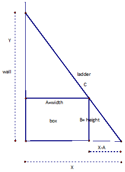 You have a box of width A and height B that stands next to a wall. What is the length C of the shortest ladder that will reach over the box and touch the wall?