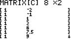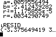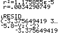 How good is the fit? Go to LIST and under NAMES you will find a new list called RESID. (This list is formed whenever you run a regression using the calculator's software). Bring RESID to the homescreen and you will see a list of 8 elements: