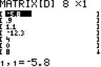 {-5.8, .9, 1.1, -12.3, 4, 0, 8, -15}→Y